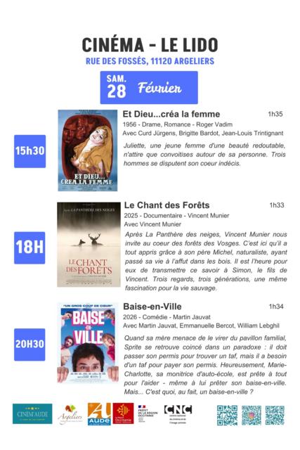 Le samedi 28 février 2026 : A 15h30 le film "Et dieu créa la femme" vous sera diffusé au Lido....