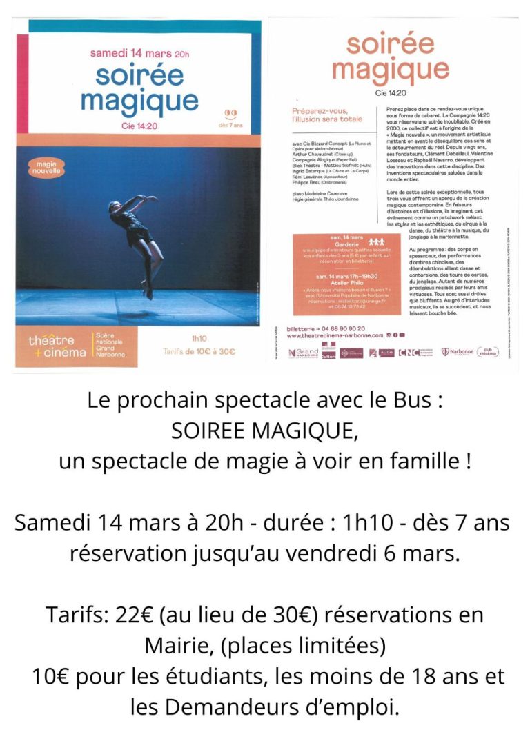 THEATRE NARBONNE LE 14 MARS A 20 H SOIREE MAGIQUE