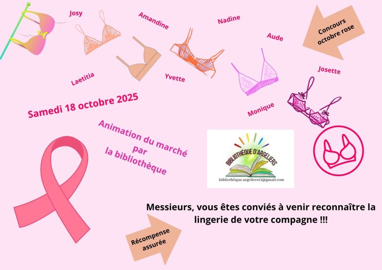 Animation du marché le 18 octobre 2025 de 8h à 15h par la Bibliothèque : concours octobre rose. Messieurs, venez participer à notre concours !!!!