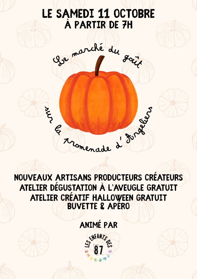 L'association "Les enfants des 87" organise un marché des producteurs sur la promenade lors du marché hebdomadaire le samedi 11 octobre 2025 à partir de 7h.